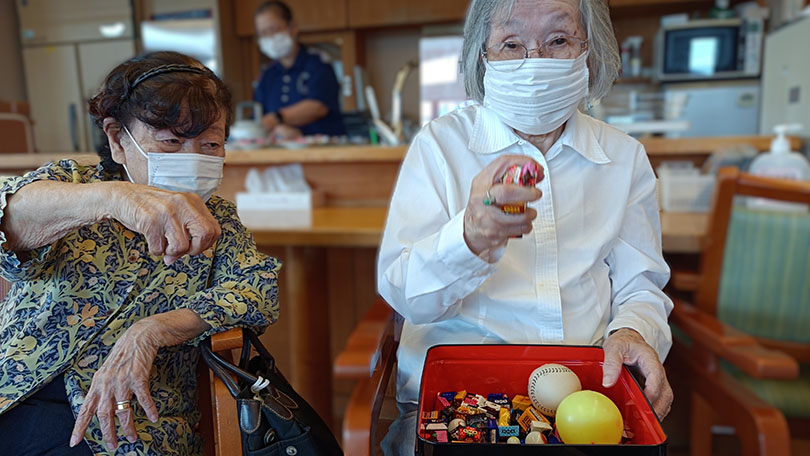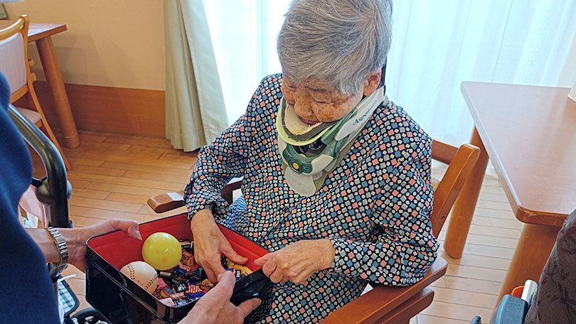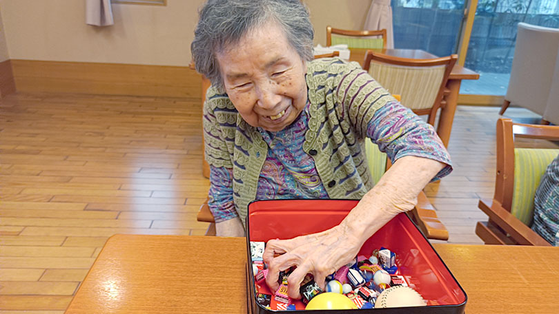 チロルチョコつかみ取り 2025年9月25日2025年9月25日 GOTOスイーツ企画でチロルチョコのつかみ取りを行いました! チロルチョコは福岡県で誕生したとのことです。初耳でした… ボックスの中に苺味やアーモンド味など色々な種類のチロルチョコを入れ取っていただきます。ボールやビー玉が邪魔するのを上手くよけながら取られていました( *´艸`) 一番多かったのが15個でした!すごいですね。 取ったものはおやつの時間に提供し、食べきれないものは翌日に食べます。