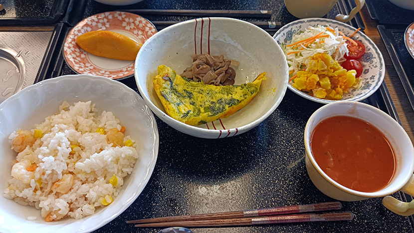 10月28日は、行事食ではかぼちゃのキッシュ、秋野菜サラダ、スイートポテト、ピラフ、ミネストローネと秋ならではのお料理を提供しました!